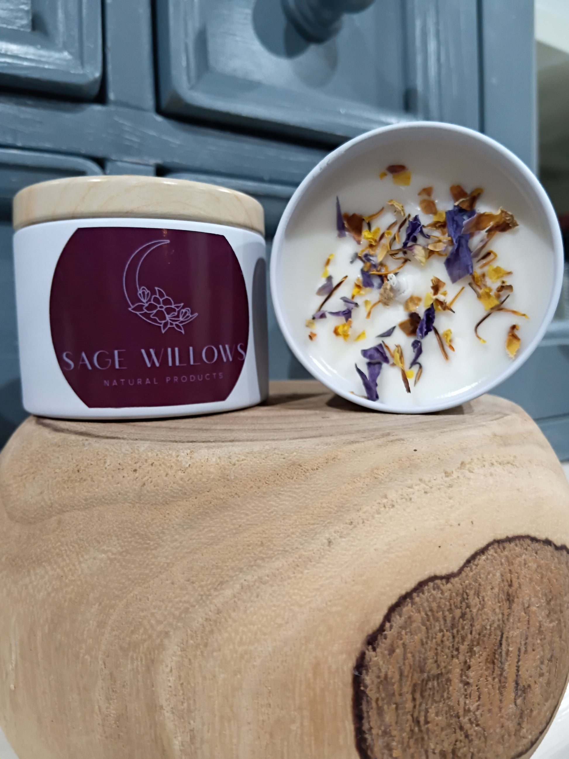 Crisp apple scent with added organic blue lotus flowers. 1 cotton wick.